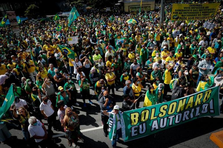 El sistema institucional es el blanco del posible autogolpe, pero sus reacciones no son homogéneas. El proyecto de reforma electoral de Bolsonaro no fue aprobado porque no alcanzó la mayoría calificada necesaria de dos tercios, pero sí tuvo mayoría en la Cámara de Diputados, pese a que el Presidente ha mencionado la posibilidad de postergar la elección presidencial de 2022 si no se modifica el sistema electoral. Las decenas de juicios políticos pedidos contra el Presidente también están frenados en el Congreso por no alcanzar la mayoría calificada necesaria. Hay legisladores como el Presidente del Senado -un aliado circunstancial de Bolsonaro- que han advertido sobre los riesgos de una ruptura institucional, pero gran parte de los legisladores se mantiene en silencio. Cabe recordar que en el golpe de 1964, el Congreso no fue disuelto y que se mantuvo funcionando, aunque sólo con partidos con buena relación con el régimen militar. En cuanto a la Justicia, Bolsonaro ataca a un integrante del Supremo Tribunal Federal (Alexandre de Moraes), que investiga una causa por el uso de “fake news” por parte del oficialismo, en el cual está acusado uno de los hijos del Presidente y han sido detenidos decenas de partidarios de Bolsonaro. También pone como blanco a un integrante del Supremo Tribunal Electoral (Roberto Barroso), que se opone a la reforma para salir del voto electrónico que impulsa el Presidente. Cabe señalar que el Máximo Tribunal, que en el gobierno de Temer impidió que Lula se presentara como candidato presidencial por las causas de corrupción por las cuales se encontraba detenido, meses atrás lo liberó para que pueda presentarse como candidato en la próxima elección presidencial.